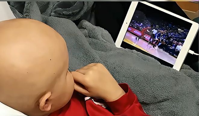 布罗迪会在治疗间隙练习运球,在病房角落放上小球框,模仿着库里投三分的姿势。
