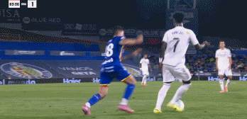 第30分钟,皇马前场围攻,姆巴佩禁区弧顶左侧大力兜射,索里亚将球扑住。第36分钟,皇马继续围攻,楚阿梅尼禁区弧顶处也来一记远射,皮球稍稍高出横梁处了底线。上半时最后时刻,皇马获得禁区弧顶前位置还不错的任意球机会,阿拉巴操刀主罚大力兜射,皮球绕过人墙直奔球门而去,索里亚奋力将球扑出。易边再战皇马依然占据优势继续猛攻,第54分钟,维尼修斯替补登场。第71分钟,皇马又获得禁区弧顶处位置很好的任意球机会,姆巴佩操刀主罚大力兜射,皮球从人墙穿过,擦着门柱外侧出了底线。